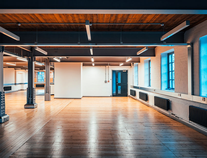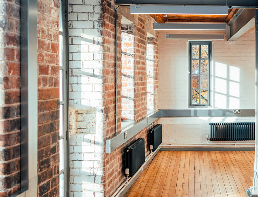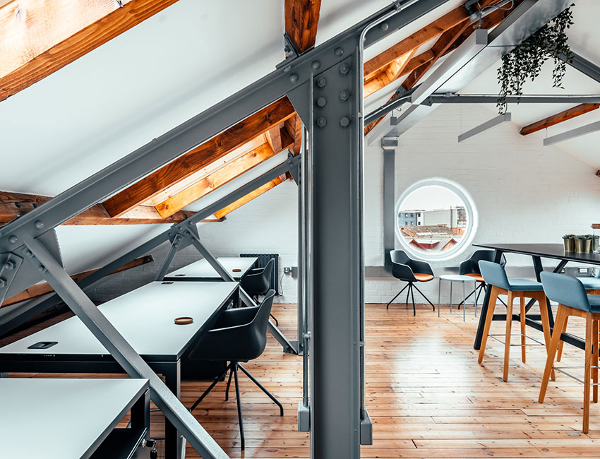 Distinctive workspace in The Calls district, blending original industrial features with modern amenities.